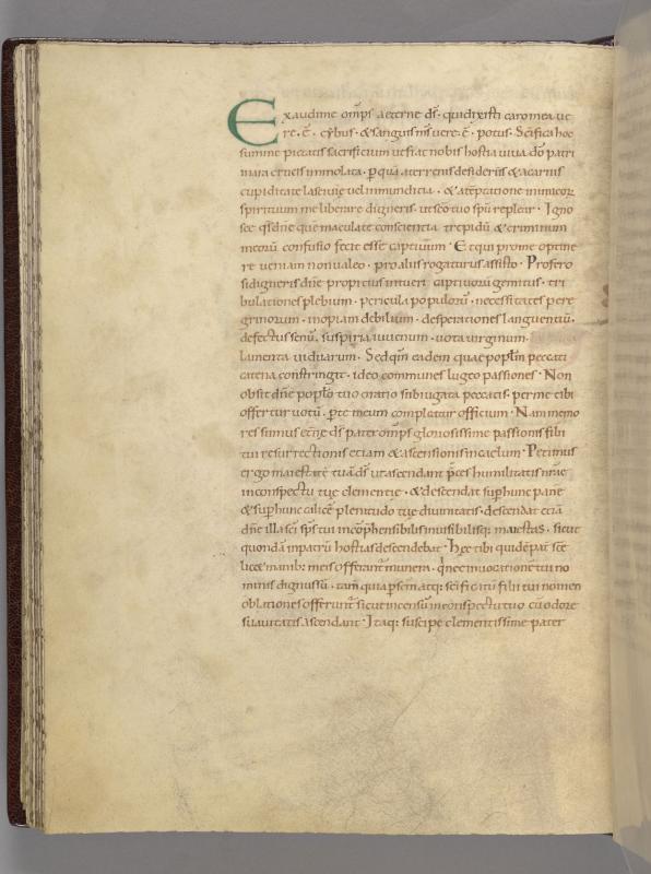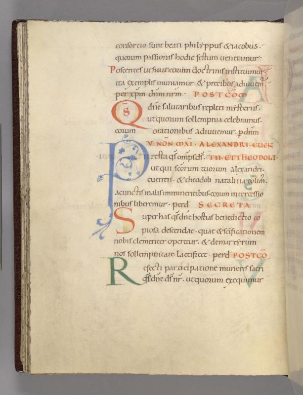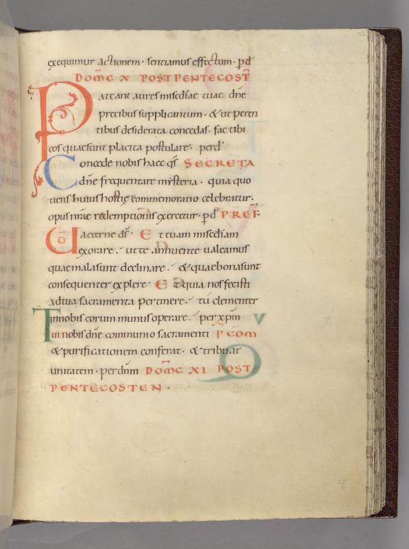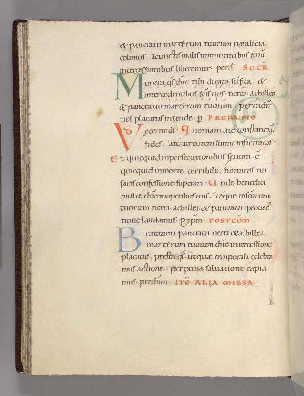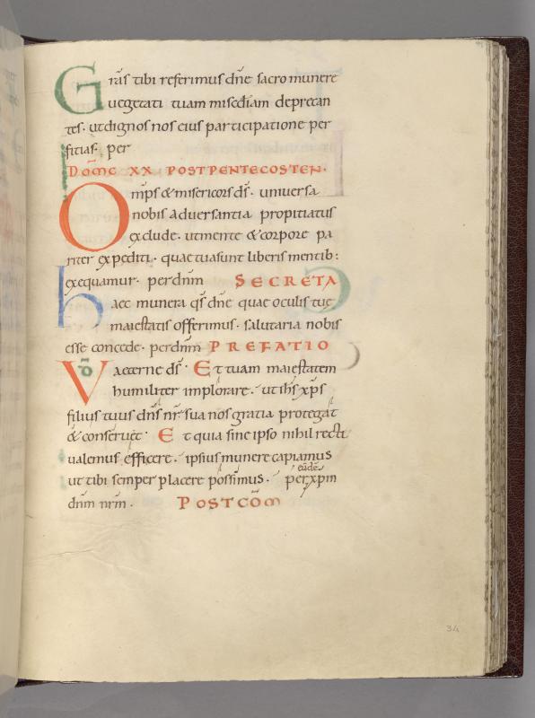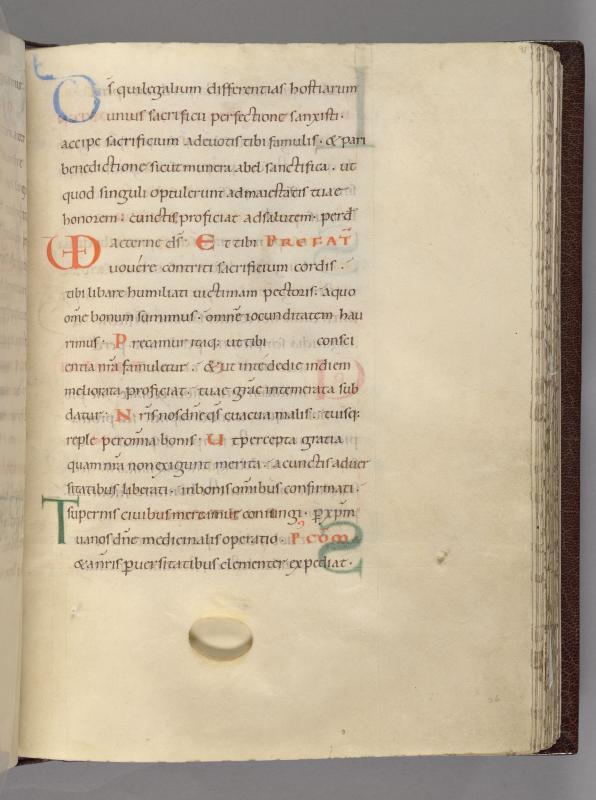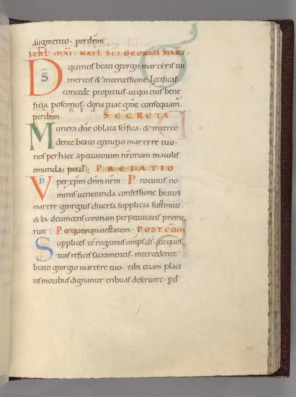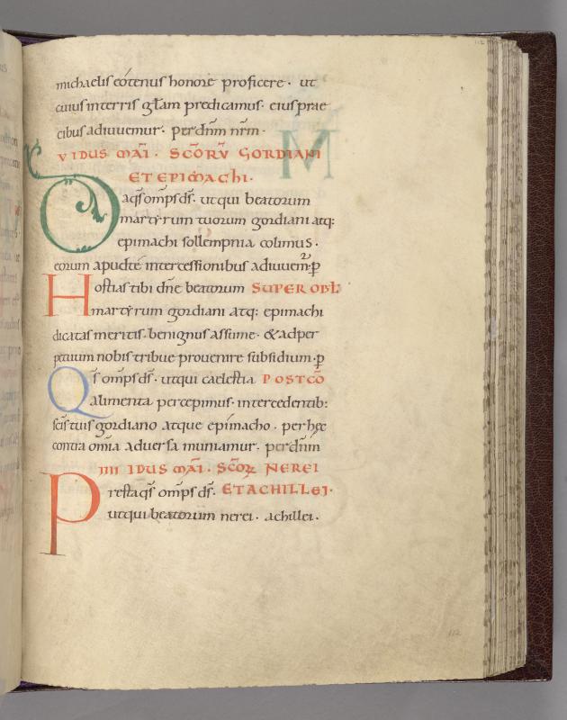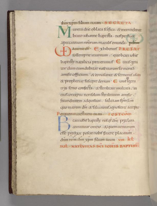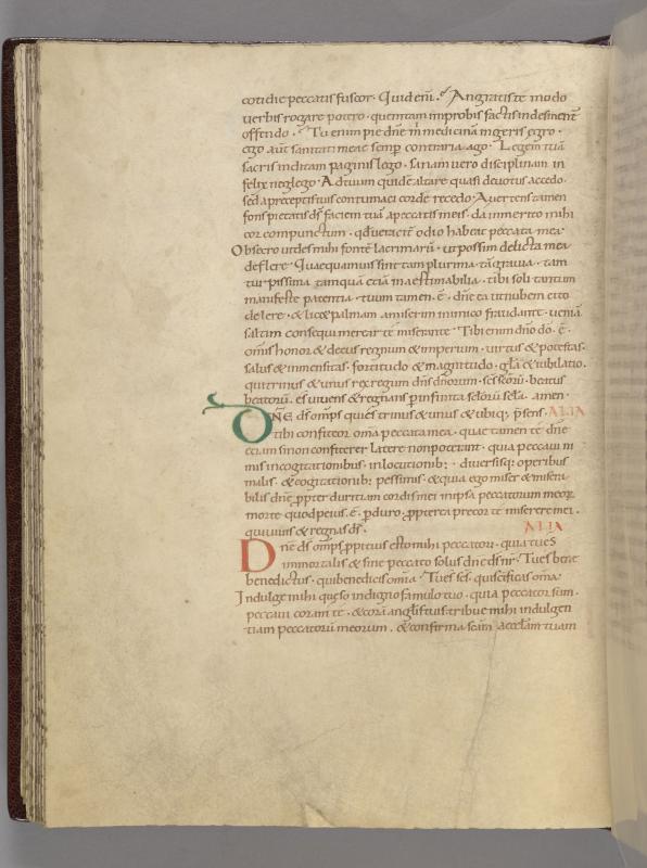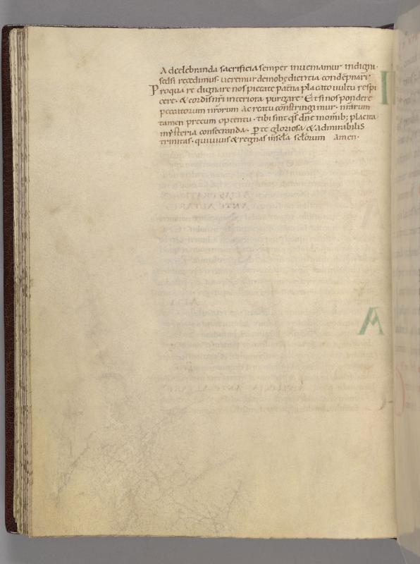 Scene within initial D decorated with interlace, at beginning of Collect for Feast of Annunciation.