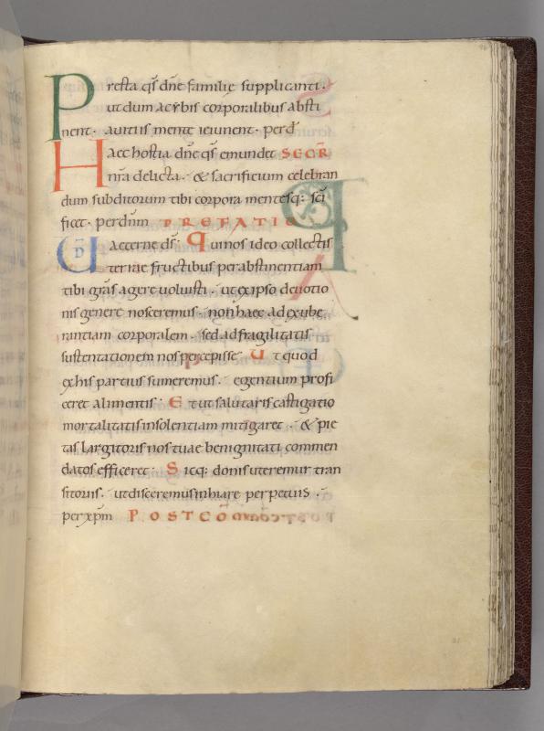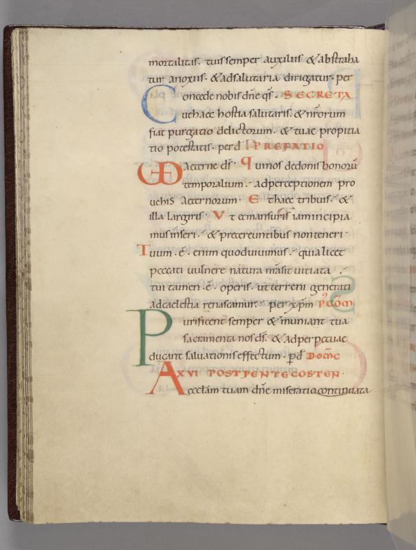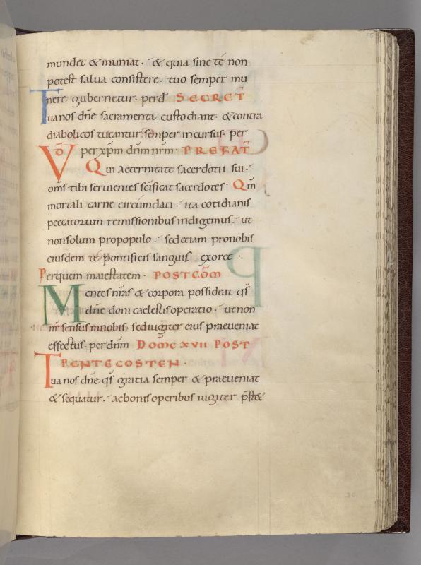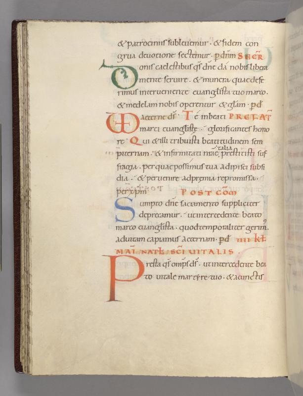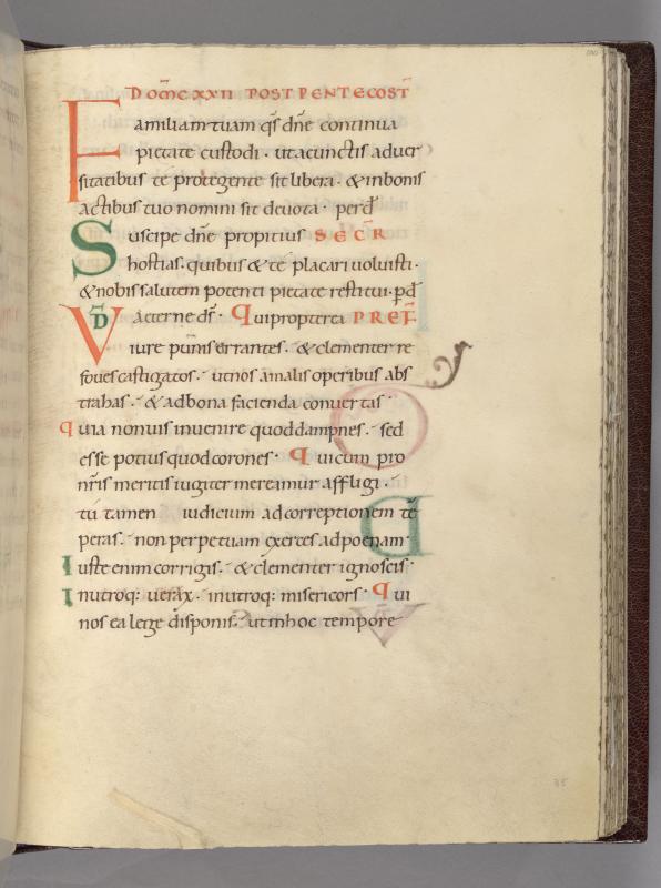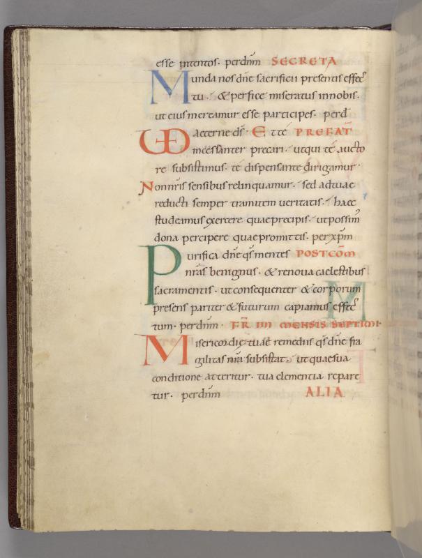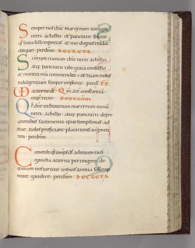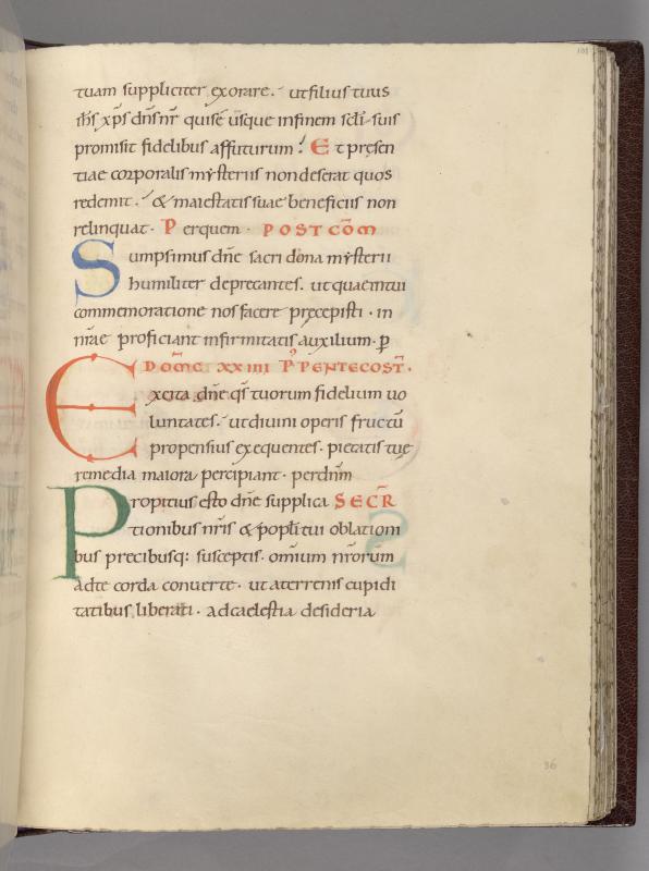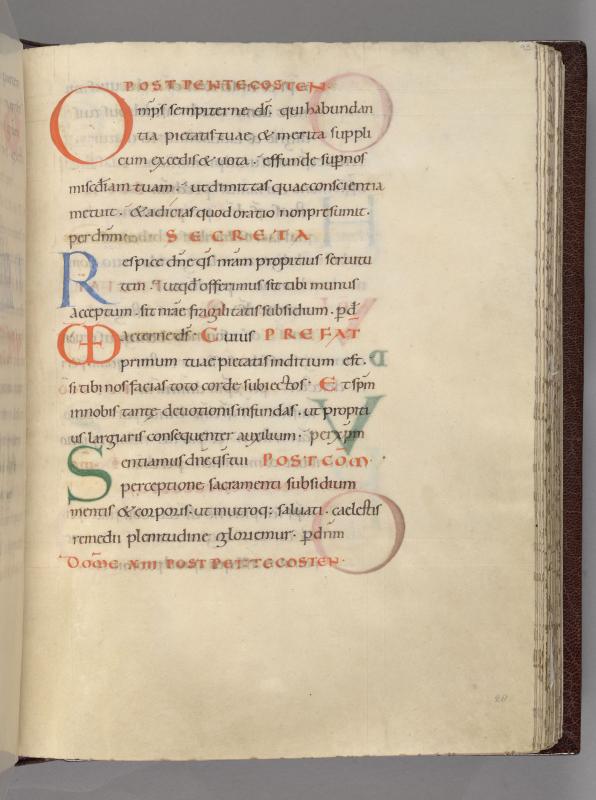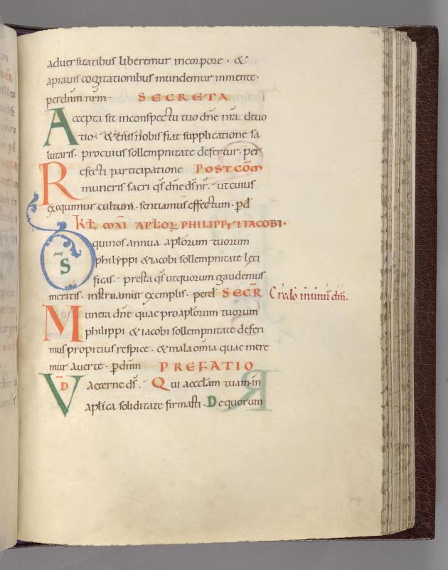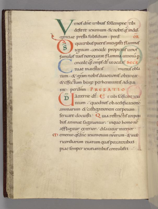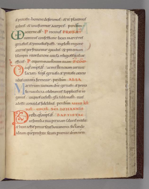 Scene within initial D decorated with interlace, at beginning of Collect for Feast of Annunciation.