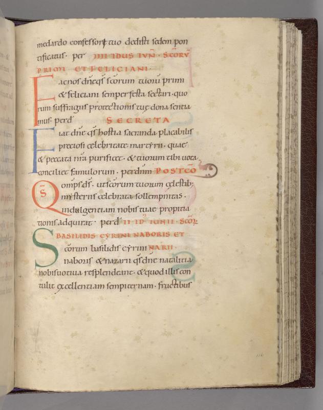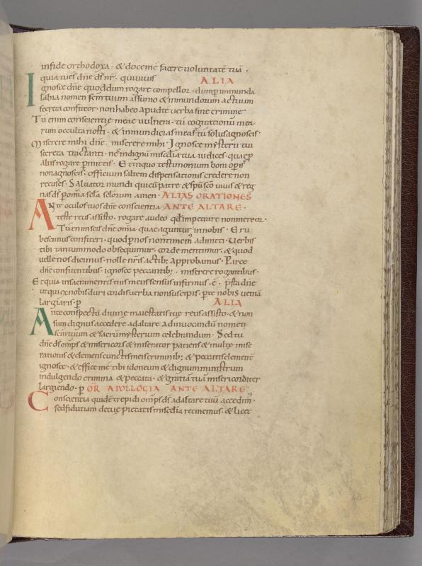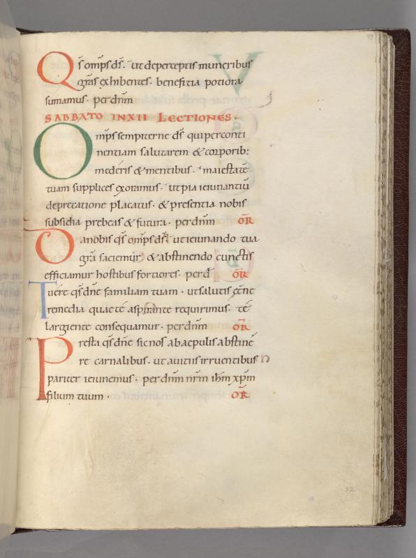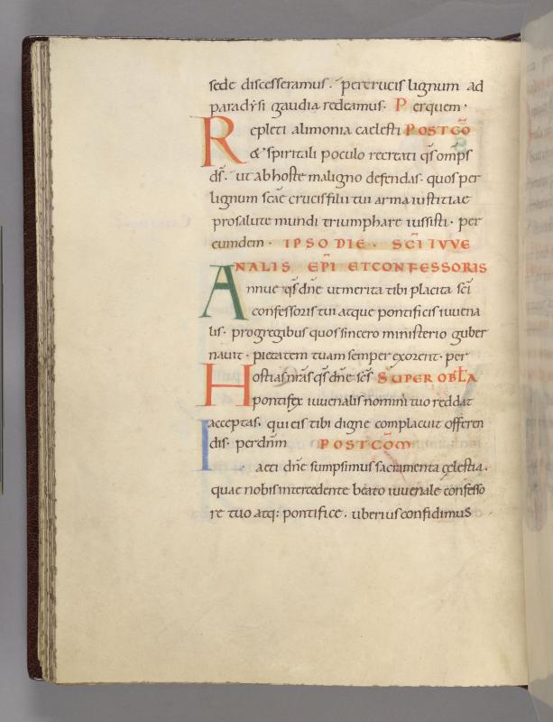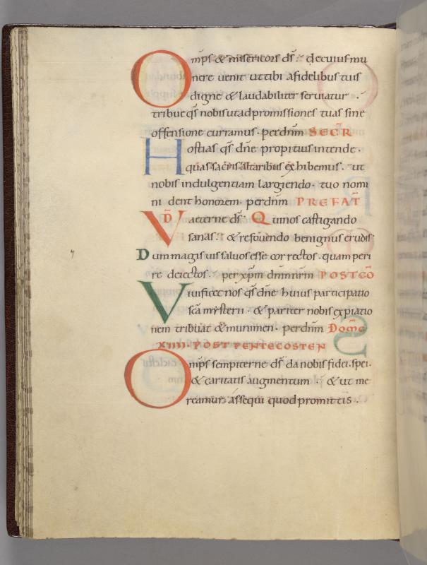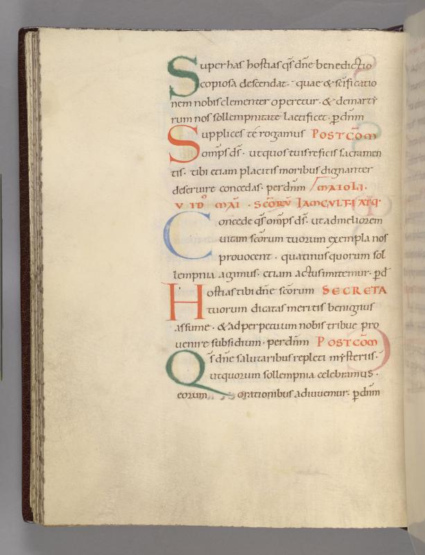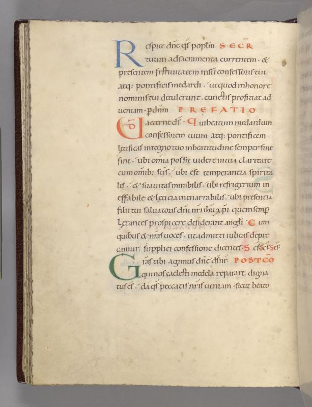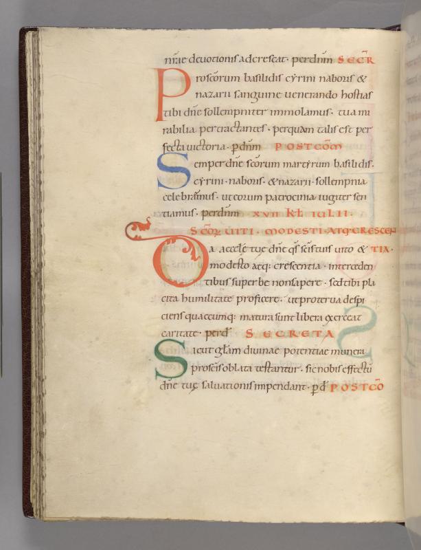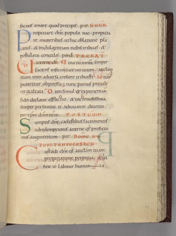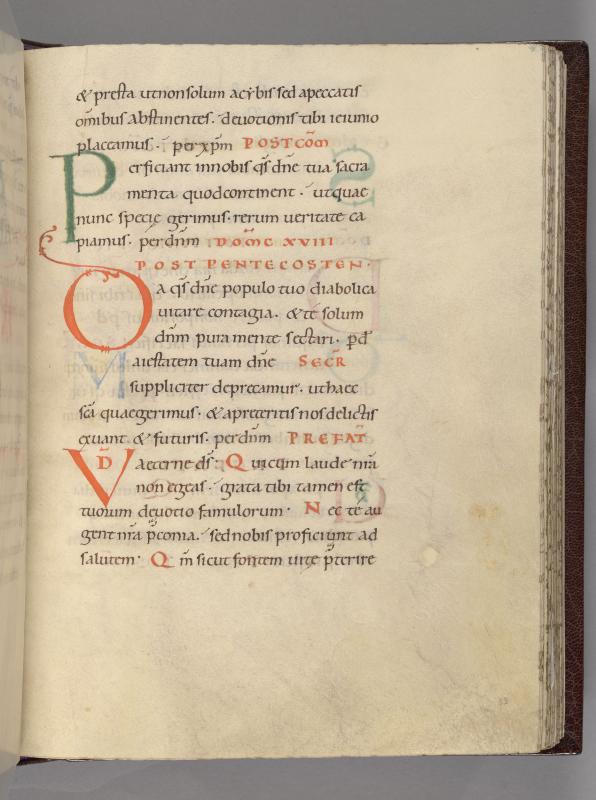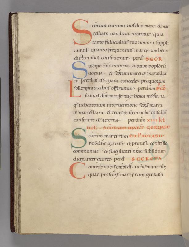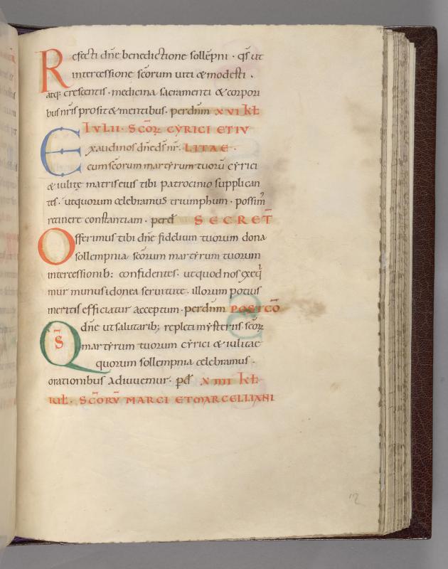 Scene within initial D decorated with interlace, at beginning of Collect for Feast of Annunciation.
