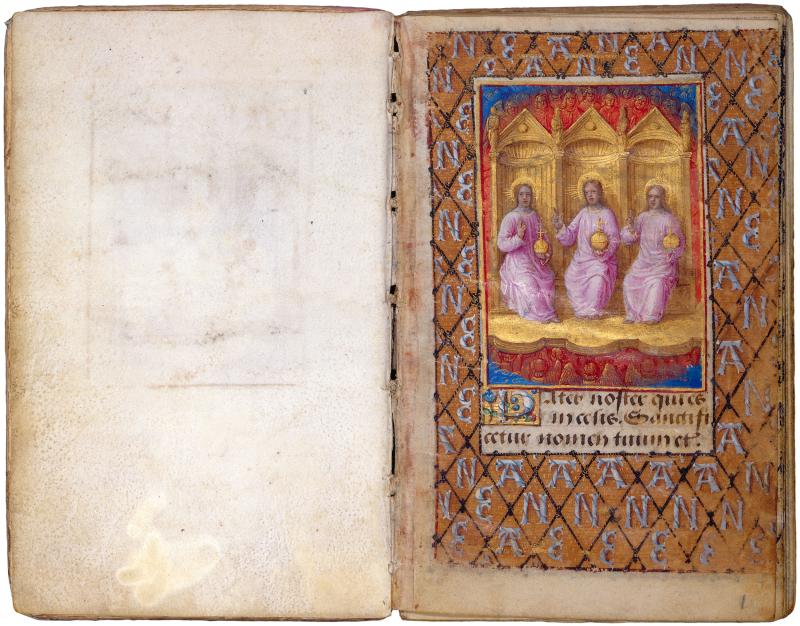 Poyer begins the Prayer Book of Anne de Bretagne with an image of the Three Persons of the Holy Trinity, which is a fundamental doctrine of Christianity. The picture illustrates the Our Father.