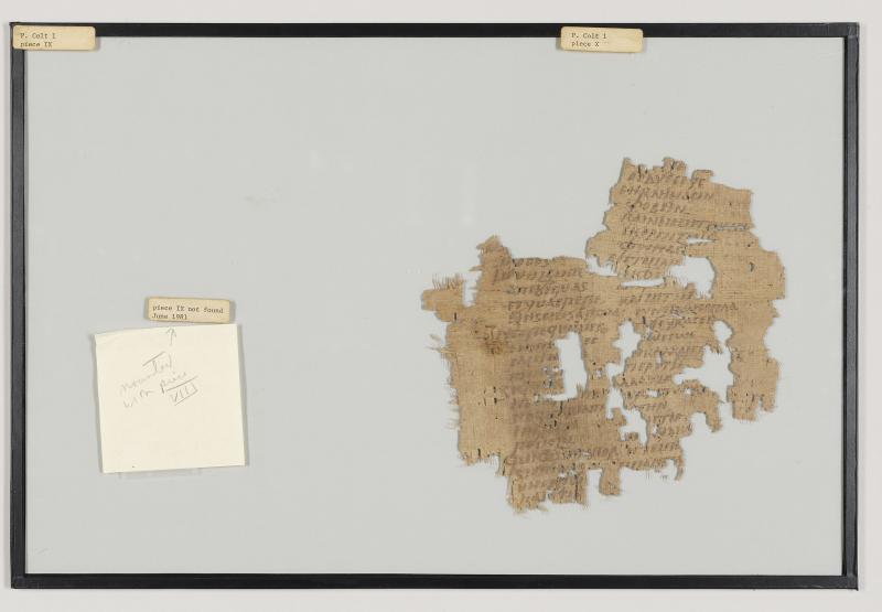 During excavations at Auja el-Hafir (ancient city of Nessana) in Palestine, Harris Dunscombe Colt (Colt Archaeological Expedition), under the auspices of the British School of Archaeology in Jerusalem, discovers papyri (considered the joint property of Colt and the Palestine Government, with a division of them to be made later) in two storerooms attached to the churches of Mary Mother of God and of Sts. Sergius and Bacchus, winter of 1935-36; 13 papyrus rolls and 20 boxes of papyri fragments (and 460 coins) are lent with the government's permission to the British Museum for treatment and study purposes, agreement dated 28 May 1936; Colt requests the loan to New York University of certain papyri, 20 August 1937; 12 papyri (and 15 shards, 1 bone and 3 stone objects) are lent with the government's permission to the British Museum for treatment and study purposes, agreement dated 21 August 1937; loan agreement of 28 May 1936 extended to 31 December 1938; four Arabic papyri are returned to Palestine, as of 28 February 1939; loan agreements of 28 May 1936 and 21 August 1937 are extended to 31 December 1939; the papyri are deposited at the Classics Department of New York University for cataloguing, date unknown but by 1941 at the latest; loan of some papyri to Brooklyn Museum of Art for exhibition, 1945; Colt donates literary papyri nos. 7 and 13 to the Pierpont Morgan Library and places the rest of the literary papyri (a portion of which are his) on deposit, 1955; Colt places on deposit at the Morgan the non-literary papyri (a portion of which are his), 1958; following Colt's death in 1973, his estate indicates that Colt's portion of the papyri are gifts to the Morgan, 1979; papyri fragments that were still at New York University are transferred to the Morgan, 1981.