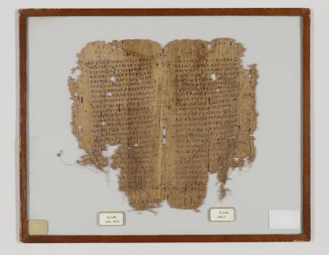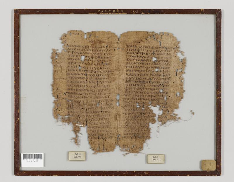 1 pane of glass containing 1 papyrus fragment ; 9.5 x 10.5 inches