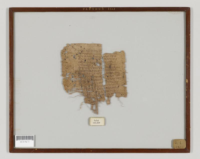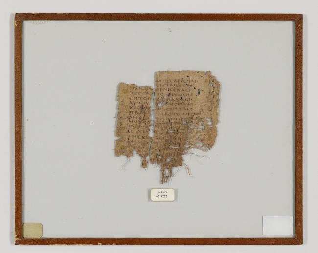 1 pane of glass containing 2 papyrus fragments ; 7 x 6 inches