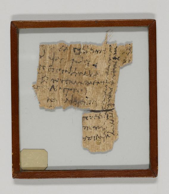 1 pane of glass containing 2 papyrus fragments ; 5 x 4 inches