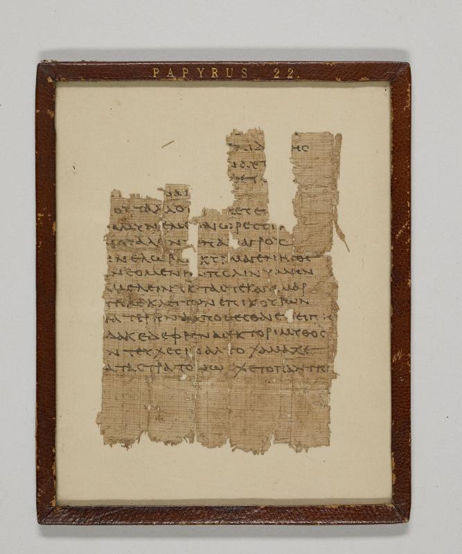 1 pane of glass containing 1 papyrus fragment ; 5 x 4 inches