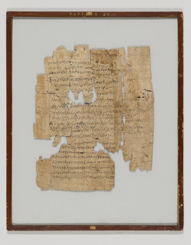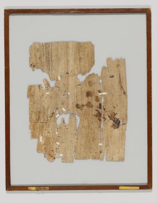 1 pane of glass containing 1 papyrus fragment ; 10.5 x 8.5 inches
