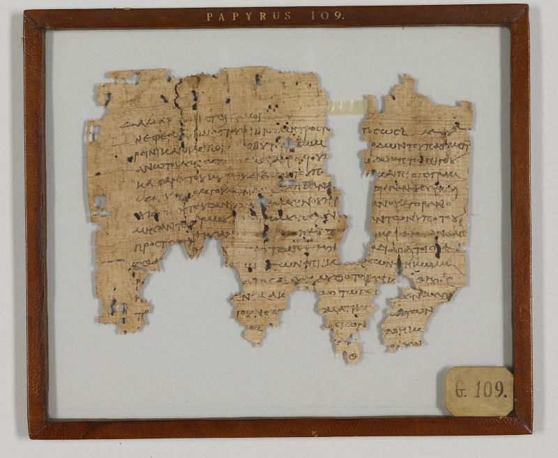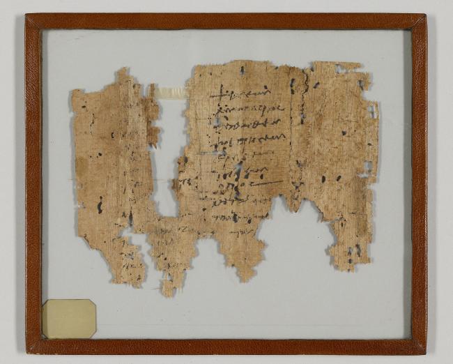 1 pane of glass containing 1 papyrus fragment ; 5 x 6 inches