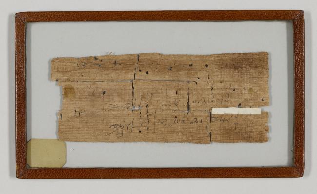 1 pane of glass containing 1 papyrus fragment ; 2.5 x 6 inches