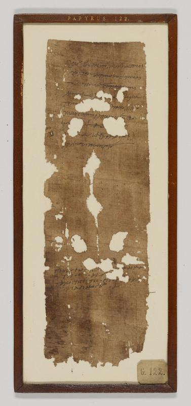 1 pane of glass containing 1 papyrus fragment ; 11.5 x 4 inches