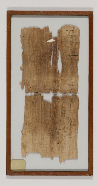 1 pane of glass containing 1 papyrus fragment ; 9.5 x 4 inches