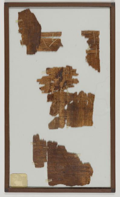 1 pane of glass containing 4 papyrus fragments ; 2.5 x 1 in.; 3 x 3 in.; 4 x 4 in.; 3.5 x 4.5 in.
