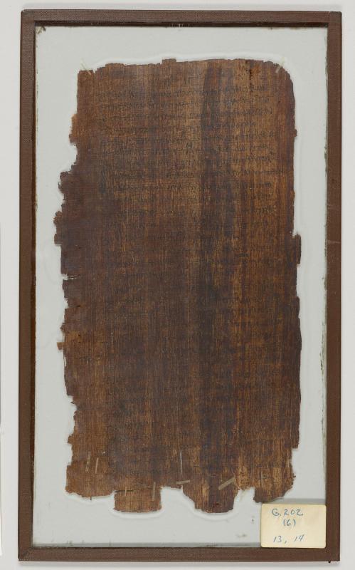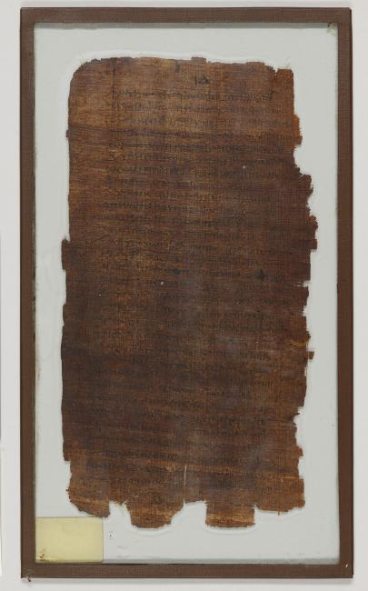 1 pane of glass containing 1 papyrus fragment ; 10.5 x 5.5 inches