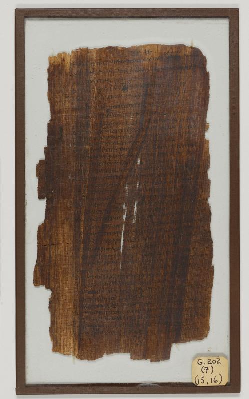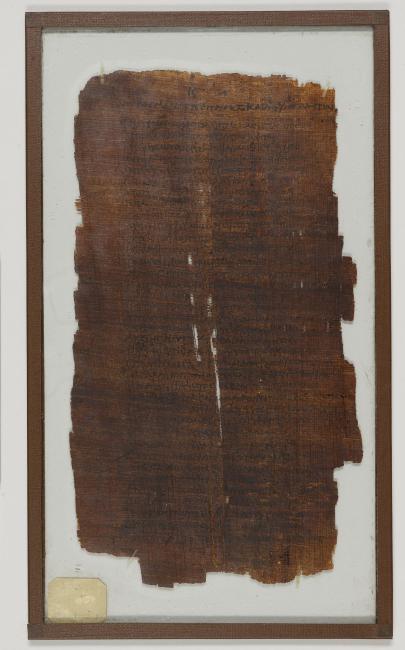 1 pane of glass containing 1 papyrus fragment ; 10.5 x 5.5 inches