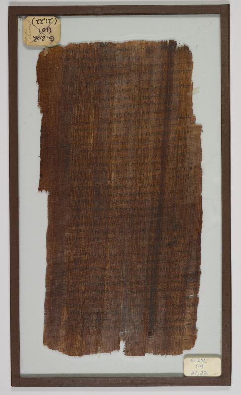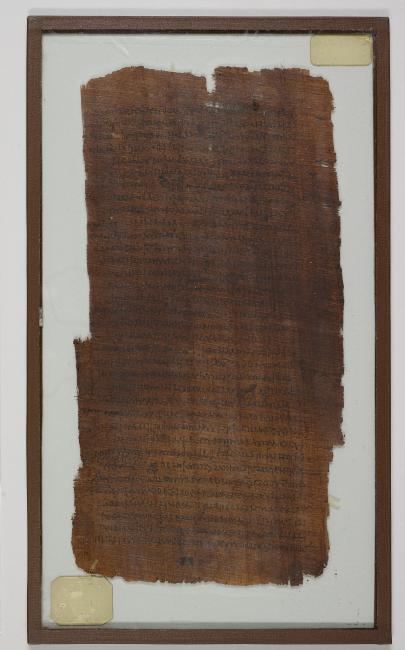 1 pane of glass containing 1 papyrus fragment ; 10.5 x 5.5 inches