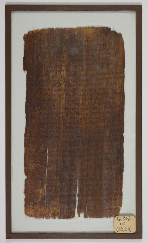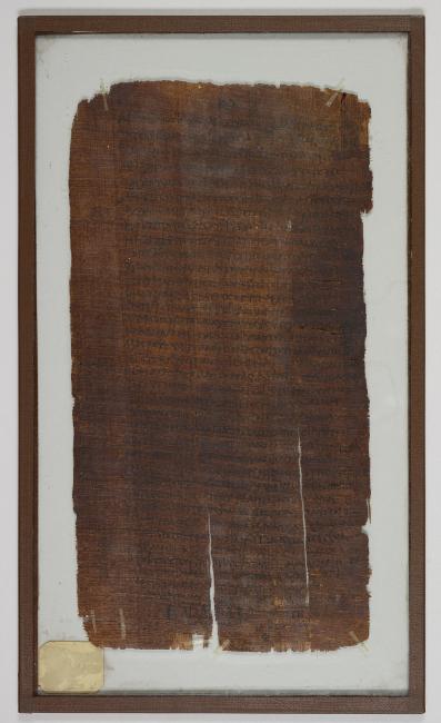 1 pane of glass containing 1 papyrus fragment ; 10.5 x 5.5 inches
