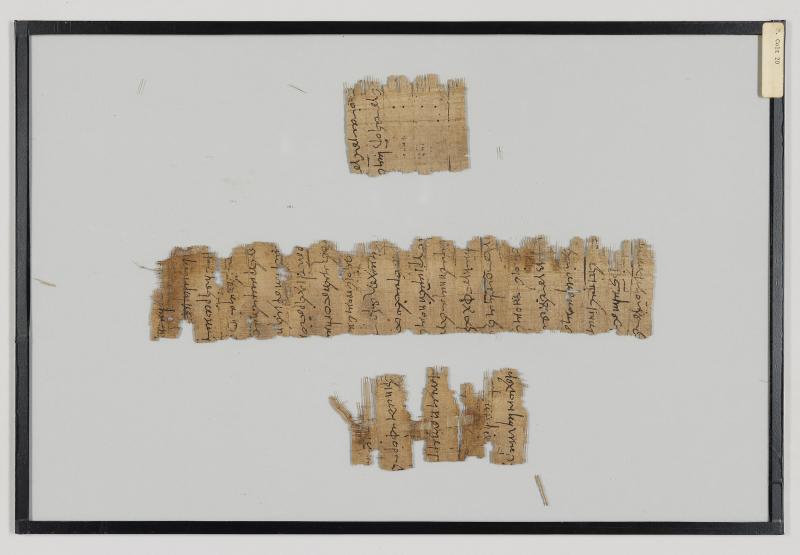 1 pane of glass containing 1 papyrus fragment ; 12 x 28 inches