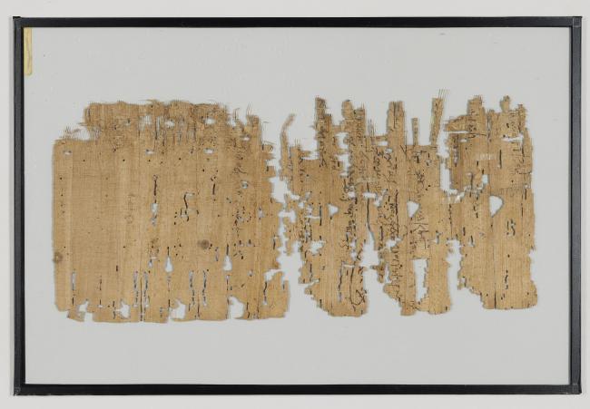 1 pane of glass containing 2 papyrus fragments ; 7 x 7 inches