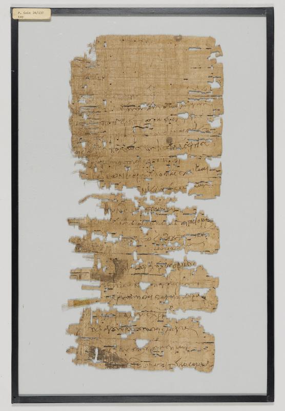 During excavations at Auja el-Hafir (ancient city of Nessana) in Palestine, Harris Dunscombe Colt (Colt Archaeological Expedition), under the auspices of the British School of Archaeology in Jerusalem, discovers papyri (considered the joint property of Colt and the Palestine Government, with a division of them to be made later) in two storerooms attached to the churches of Mary Mother of God and of Sts. Sergius and Bacchus, winter of 1935-36; 13 papyrus rolls and 20 boxes of papyri fragments (and 460 coins) are lent with the government's permission to the British Museum for treatment and study purposes, agreement dated 28 May 1936; Colt requests the loan to New York University of certain papyri, 20 August 1937; 12 papyri (and 15 shards, 1 bone and 3 stone objects) are lent with the government's permission to the British Museum for treatment and study purposes, agreement dated 21 August 1937; loan agreement of 28 May 1936 extended to 31 December 1938; four Arabic papyri are returned to Palestine, as of 28 February 1939; loan agreements of 28 May 1936 and 21 August 1937 are extended to 31 December 1939; the papyri are deposited at the Classics Department of New York University for cataloguing, date unknown but by 1941 at the latest; loan of some papyri to Brooklyn Museum of Art for exhibition, 1945; Colt donates literary papyri nos. 7 and 13 to the Pierpont Morgan Library and places the rest of the literary papyri (a portion of which are his) on deposit, 1955; Colt places on deposit at the Morgan the non-literary papyri (a portion of which are his), 1958; following Colt's death in 1973, his estate indicates that Colt's portion of the papyri are gifts to the Morgan, 1979; papyri fragments that were still at New York University are transferred to the Morgan, 1981.