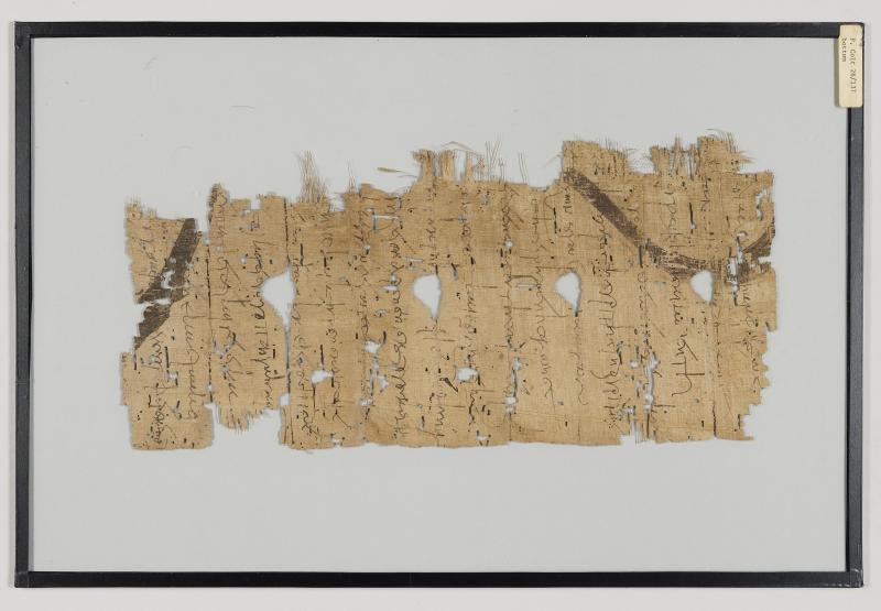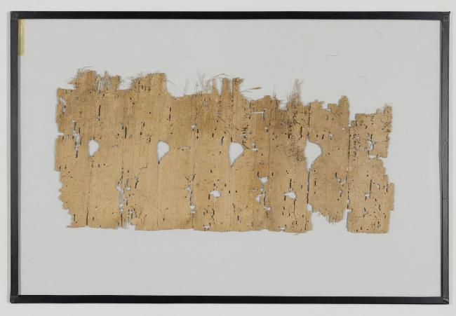 1 pane of glass containing 2 papyrus fragments ; 7 x 10 inches, 5 x 3 inches
