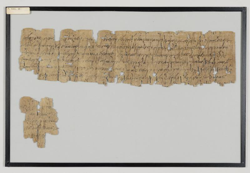 1 pane of glass containing 2 papyrus fragments ; 4 x 14 inches, 4 x 3 inches
