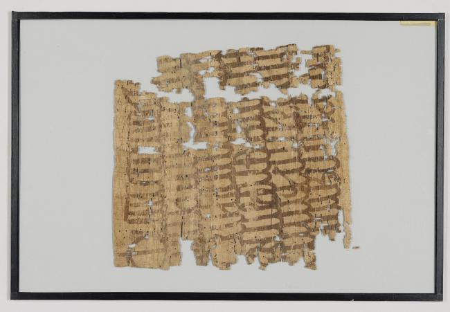 1 pane of glass containing 2 papyrus fragments ; 9 x 10 inches