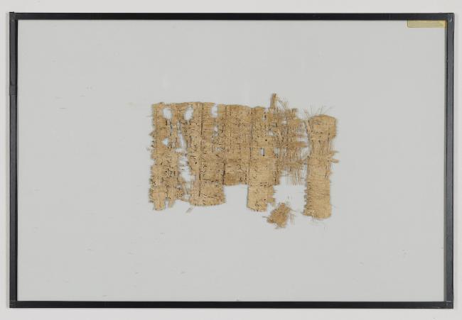 1 pane of glass containing 3 papyrus fragments ; 5 x 7 inches