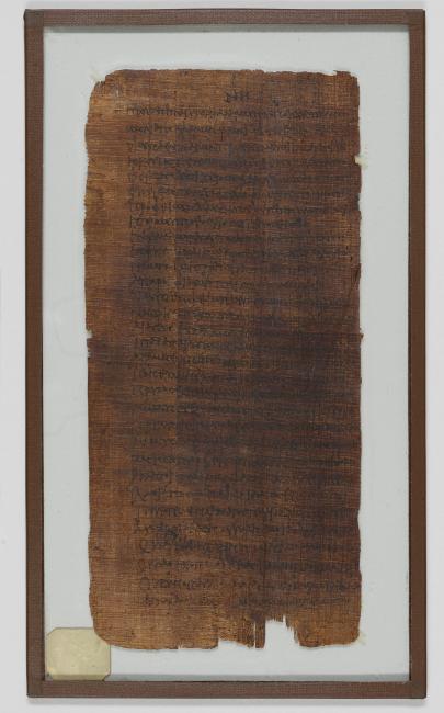 1 pane of glass containing 1 papyrus fragment ; 10.5 x 5.5 inches