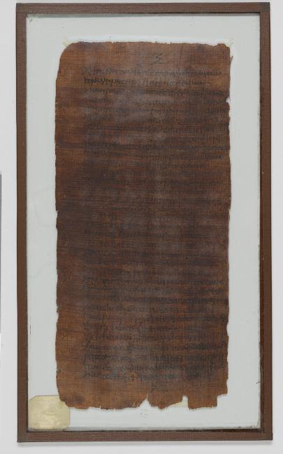 1 pane of glass containing 1 papyrus fragment ; 10.5 x 5.5 inches