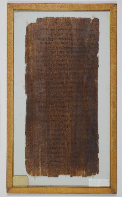 1 pane of glass containing 1 papyrus fragment ; 10.5 x 5.5 inches