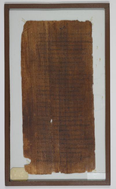 1 pane of glass containing 1 papyrus fragment ; 10.5 x 5.5 inches