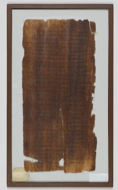 1 pane of glass containing 1 papyrus fragment ; 10.5 x 5 inches