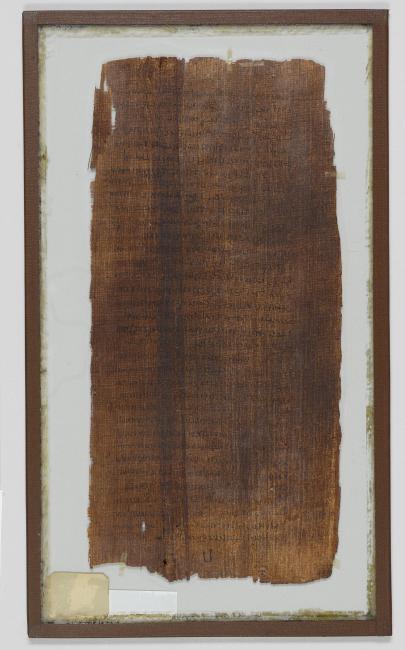 1 pane of glass containing 1 papyrus fragment ; 10.5 x 5 inches