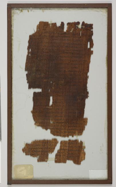 1 pane of glass containing 3 papyrus fragments ; 8 x 5 in.; 2 x 2.5 in.; 1.5 x 2.5 in.