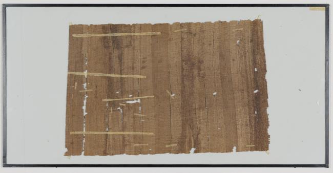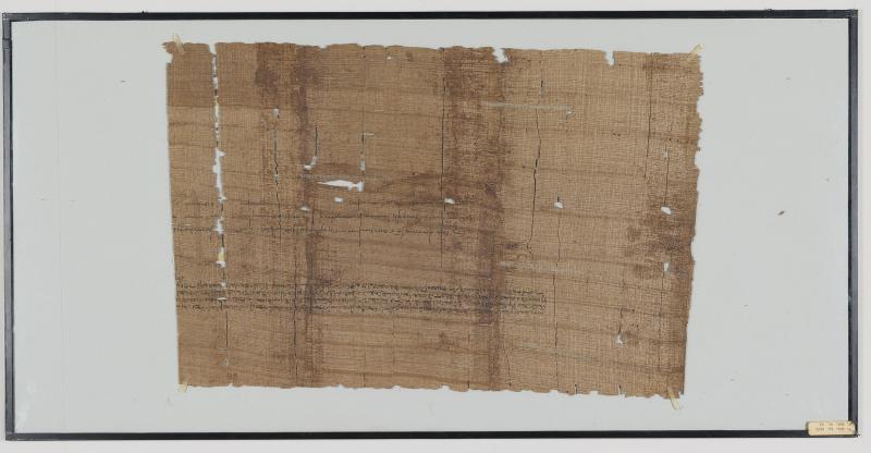 1 pane of glass containing 1 papyrus fragment ; 13 x 20 inches