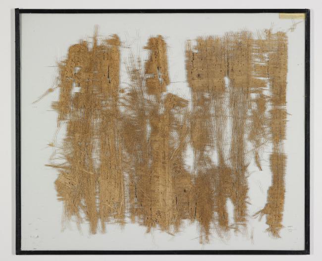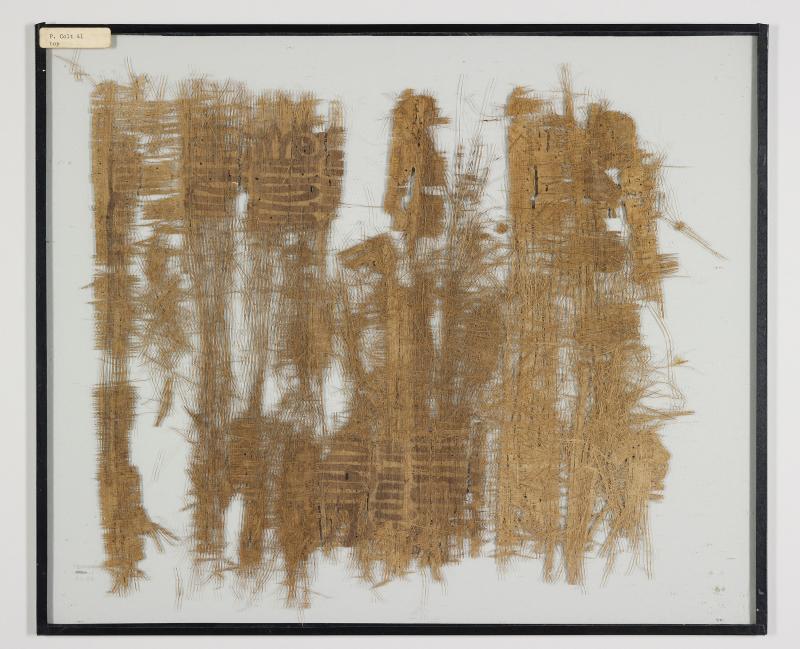 1 pane of glass containing one papyrus fragment ; 13 x 15 inches