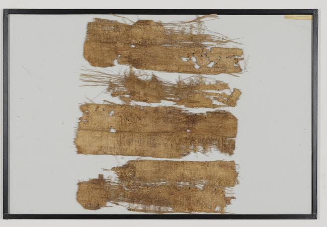 1 pane of glass containing 4 papyrus fragments ; 2.5 x 9 inches