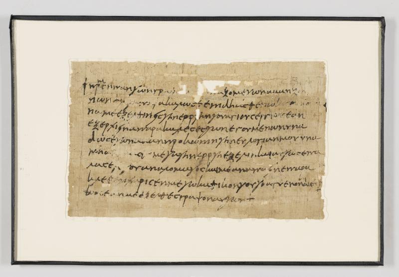 1 pane of glass containing 1 papyrus fragment ; 8 x 12.5 inches