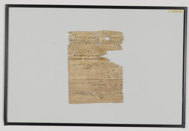 1 pane of glass containing 1 papyrus fragment ; 7 x 5.5 inches