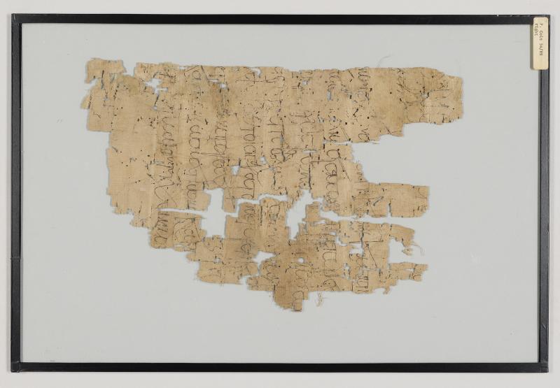 1 pane of glass containing 1 papyrus fragment ; 13 x 8 inches