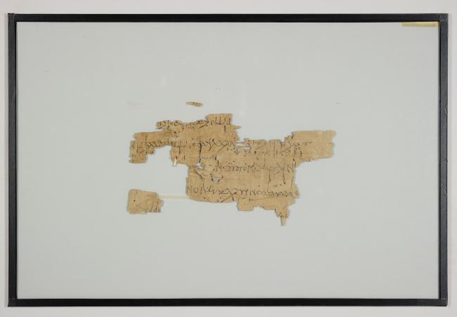 1 pane of glass containing 2 papyrus fragments ; 4 x 8 1/2 inches