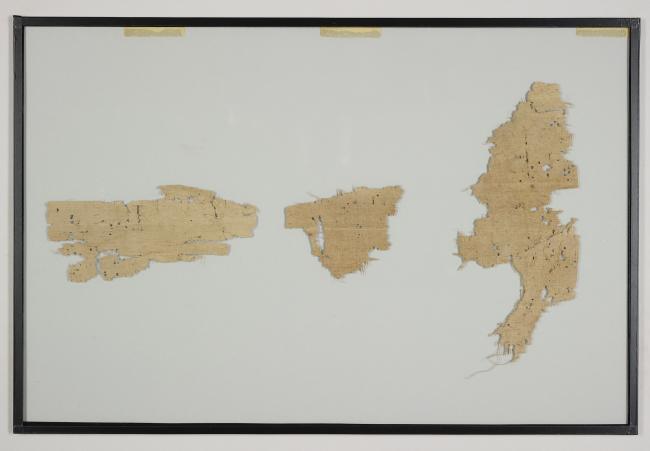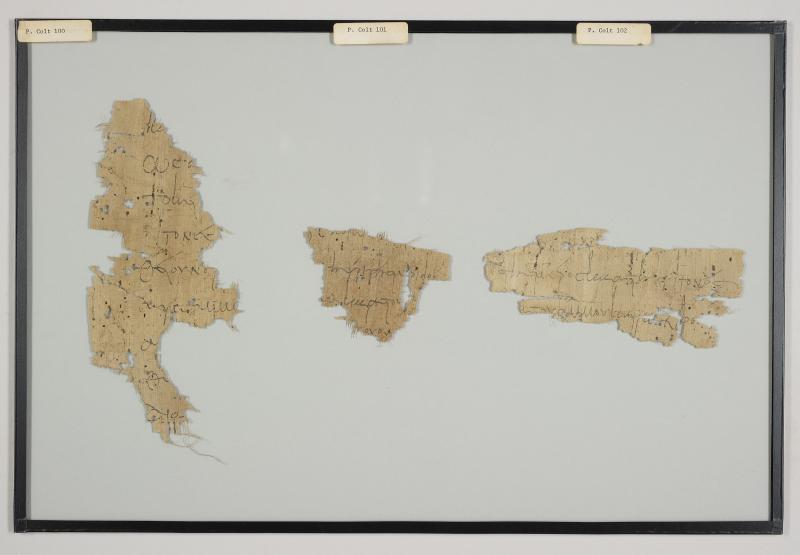 1 pane of glass containing 3 papyrus fragments ; 7 x 4 in.; 4 x 2 in.