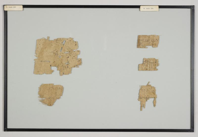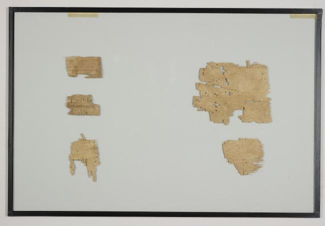 1 pane of glass containing 6 papyrus fragments ; 11 1/2 x 12 1/2 inches