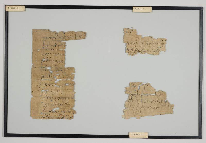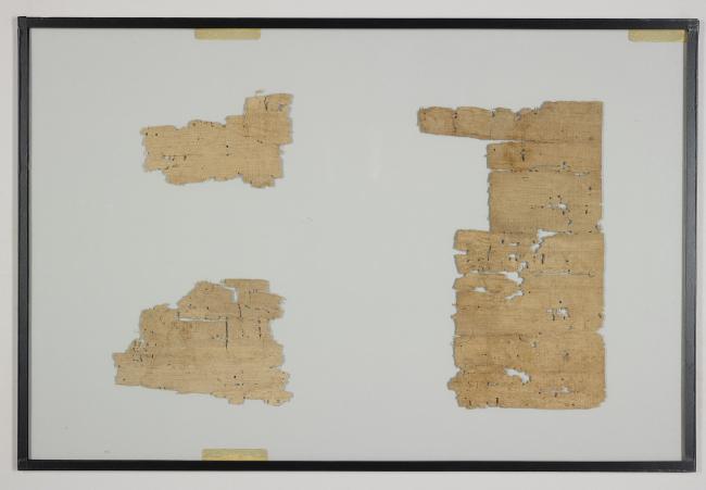 1 pane of glass containing 3 papyrus fragments ; 8 x 4 in.; 4 x 4 in.