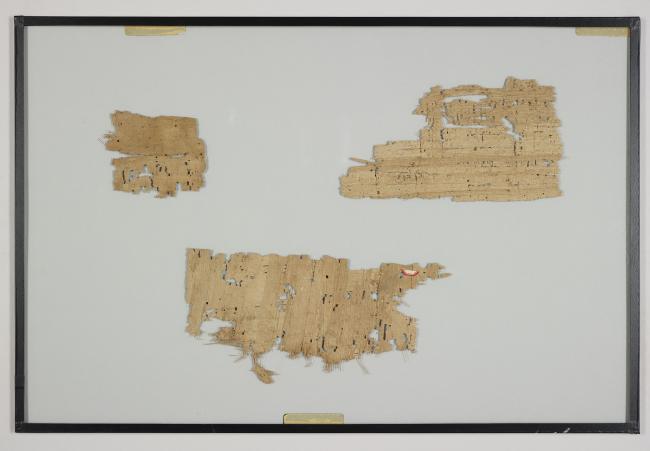 1 pane of glass containing 3 papyrus fragments ; 4 x 7 in.; 4 x 7, 2 x 3 in.