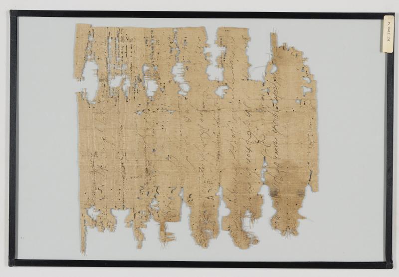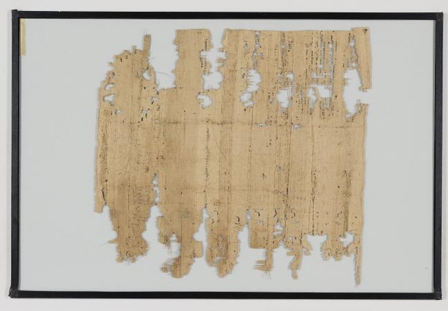 1 pane of glass containing 1 papyrus fragment ; 11 x 10 inches