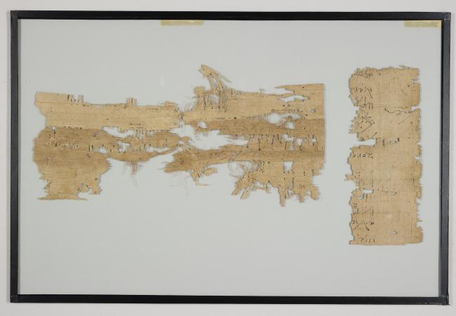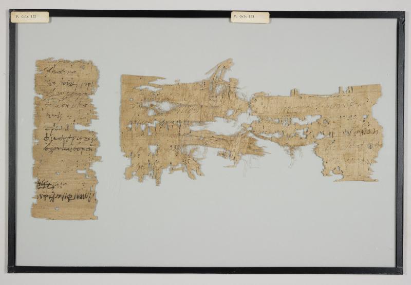1 pane of glass containing 2 papyrus fragments ; 7 x 3 in.; 5 x 11 in.