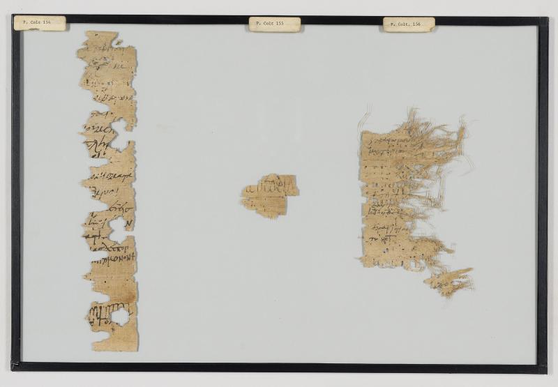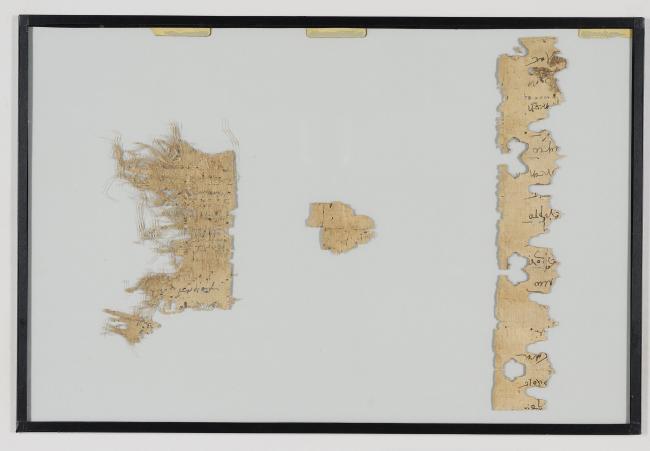 1 pane of glass containing 3 papyrus fragments ; 11 x 2 in.; 5 x 3 in.; 1 x 2 in.