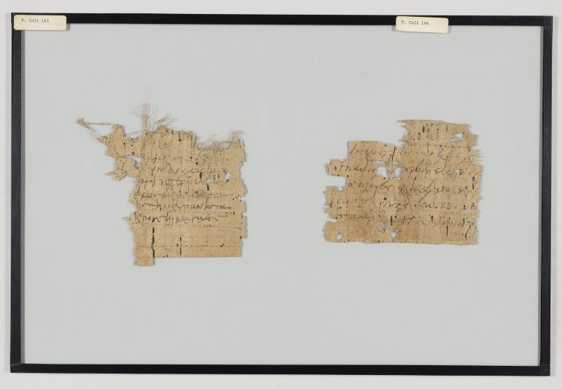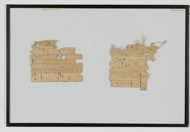 1 pane of glass containing 2 papyrus fragments ; 5 x 4 inches