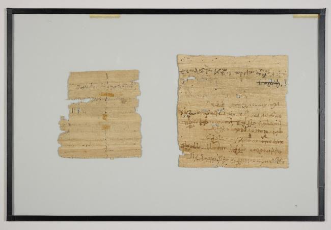 1 pane of glass containing 2 papyrus fragments ; 6 1/2 x 6 in.; 5 x 4 1/2 in.