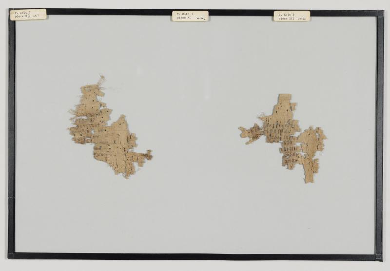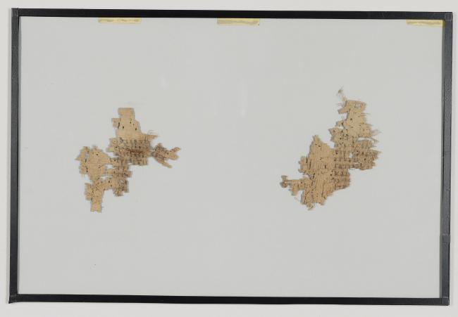 1 pane of glass containing 3 papyrus fragments ; 5 x 4 inches